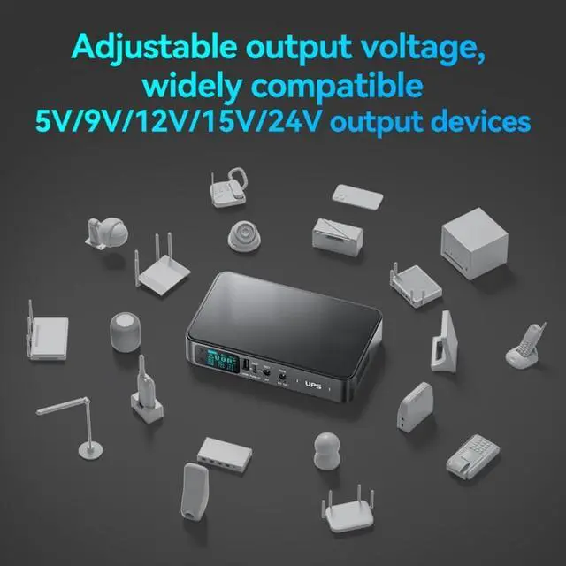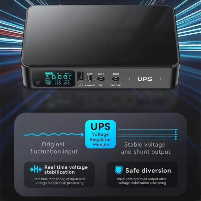 • 4-port USB+Type C+2x5.5x2.1mm output UPS uninterruptible power supply with screen display