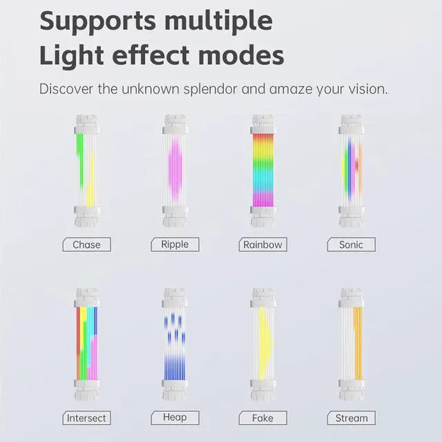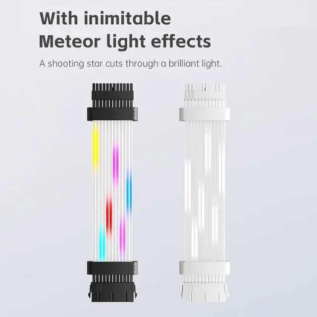 • Meteor Light Effect: The ARGB PSU cable can provide a unique meteor light effect, creating an amazing visual experience, with meteors passing by one after another, leaving behind dazzling lights.