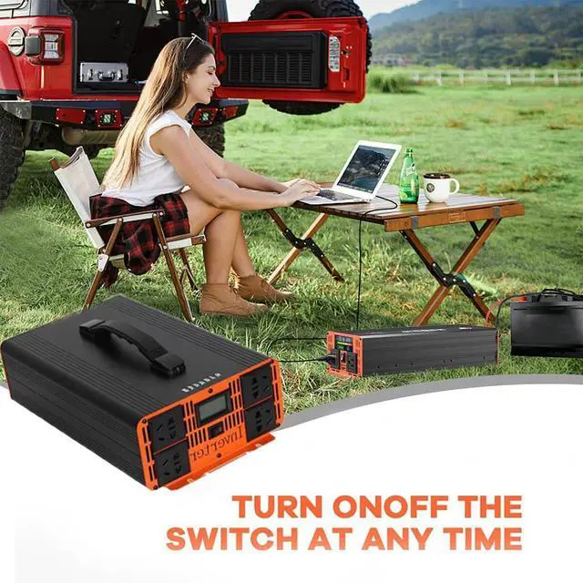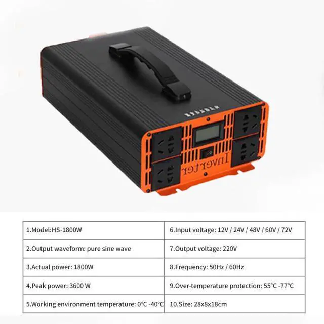 Power Inverter,1800W Sine Wave Inverter,Vehicle Power Inverter,DC to AC Converter,LCD Display, 4 Sockets, Suitable for Travel Campers, Various Appliances
