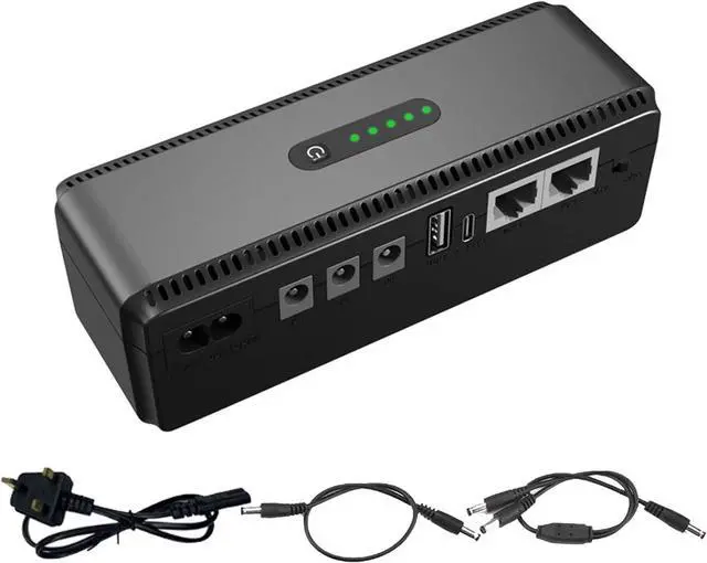 Keep your devices powered and protected with our Small UPS Backup Battery. Applicable for optical cats, routers, fingerprint time and attendance machines, fire safety systems. With stable and safe current, built-in 10400 mAh large battery and easy to use, it's ideal for business travel.
