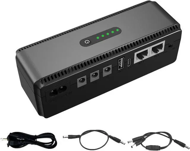 Keep your devices powered and protected with our Small UPS Backup Battery. Applicable for optical cats, routers, fingerprint time and attendance machines, fire safety systems. With stable and safe current, built-in 10400 mAh large battery and easy to use, it's ideal for business travel.