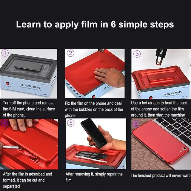 Easy to operateThis machine uses an automated process to simplify your screen protector routine. Simply mount your phone and let it take care of the rest - from extracting the air inside to applying the film precisely based on your phone model.