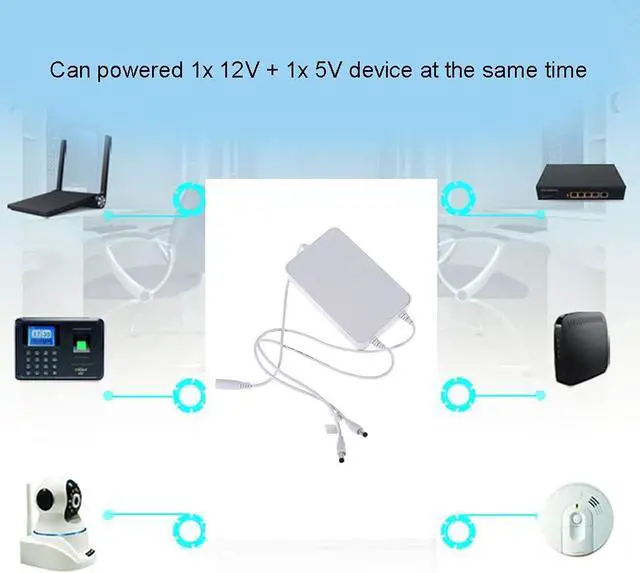 5V 1A+12V 1A Output For Most Led Strip Light Products, Cctv Camera, Ip Camera, Led Panel, Amplifier, Modem,Wireless Router And More.