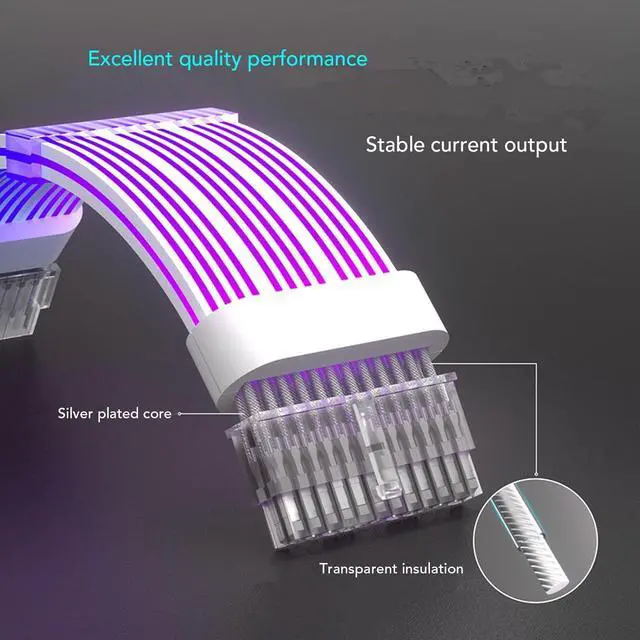 RGB Power Extension Cable Kit, 265mm ARGB GPU Power Supply Cable, 18AWG Silver Plated 24 Pin ARGB Motherboard Extension Cable, Sync PC Cable for RGB Software