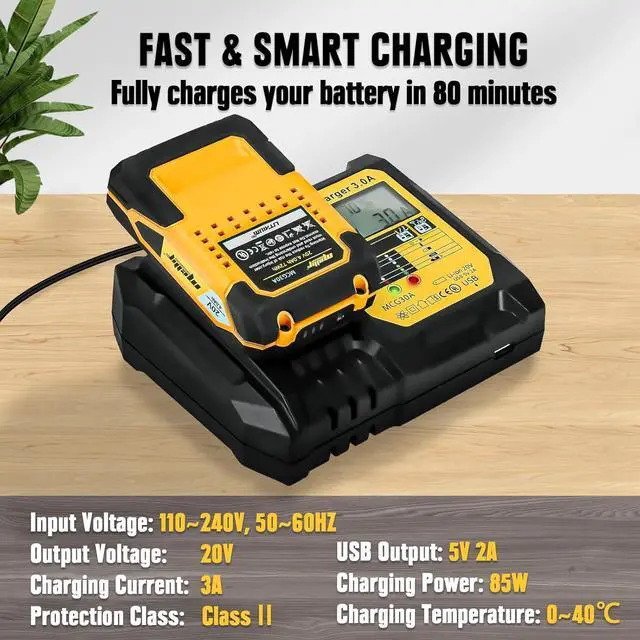 Super-fast Charging: Our charger kit utilizes cutting-edge technology, enabling you to fully charge your battery in just 80 minutes. Optimized with a 5V 2A USB charging port, allowing simultaneous charging for your phone and tablet