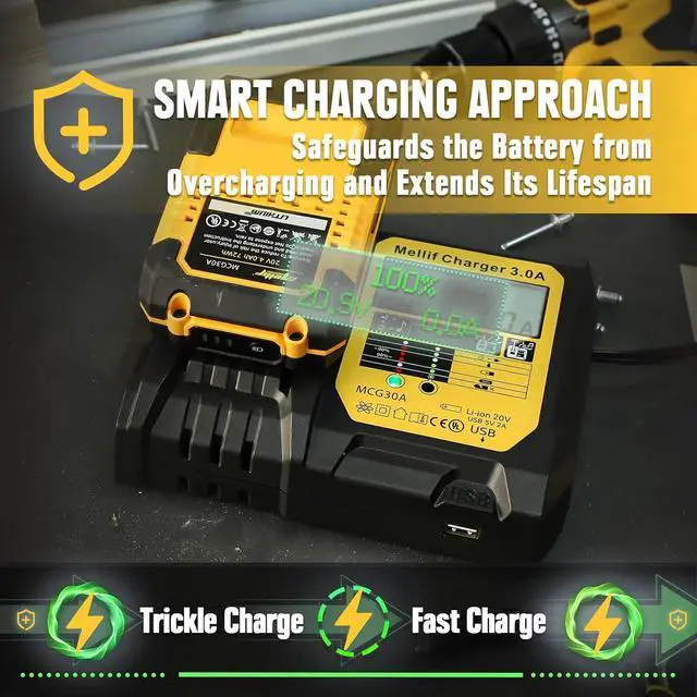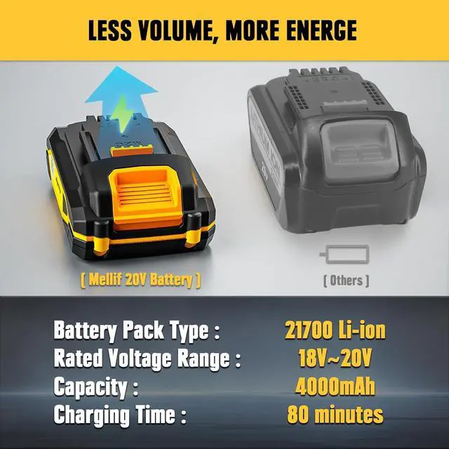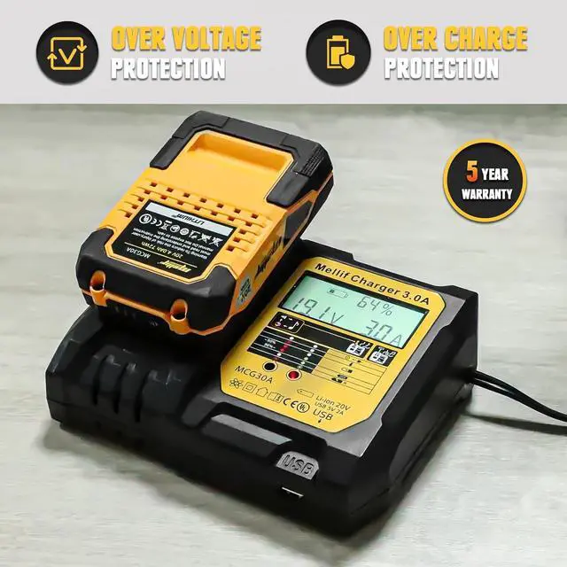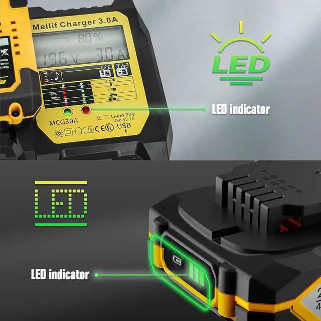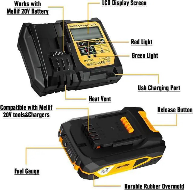 Mellif charger is compatible with Dewalt & Mellif M20 battery. Mellif M20 battery works with both Dewalt & Mellif tools