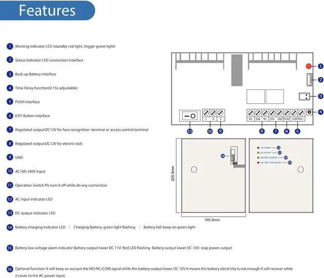 The device also includes a backup battery link function for providing alternative power during power outages.