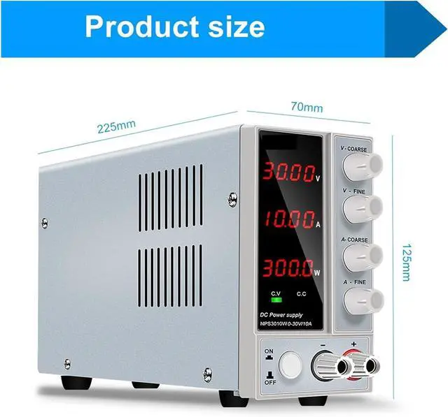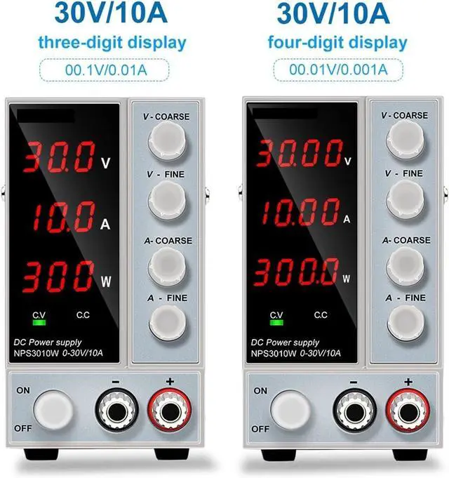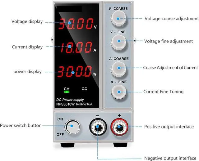 Four adjustment buttons ,The output voltage and current respectively is controlled by two variable resistors with coarse and fine regulation for morehandy and precise adjustment.