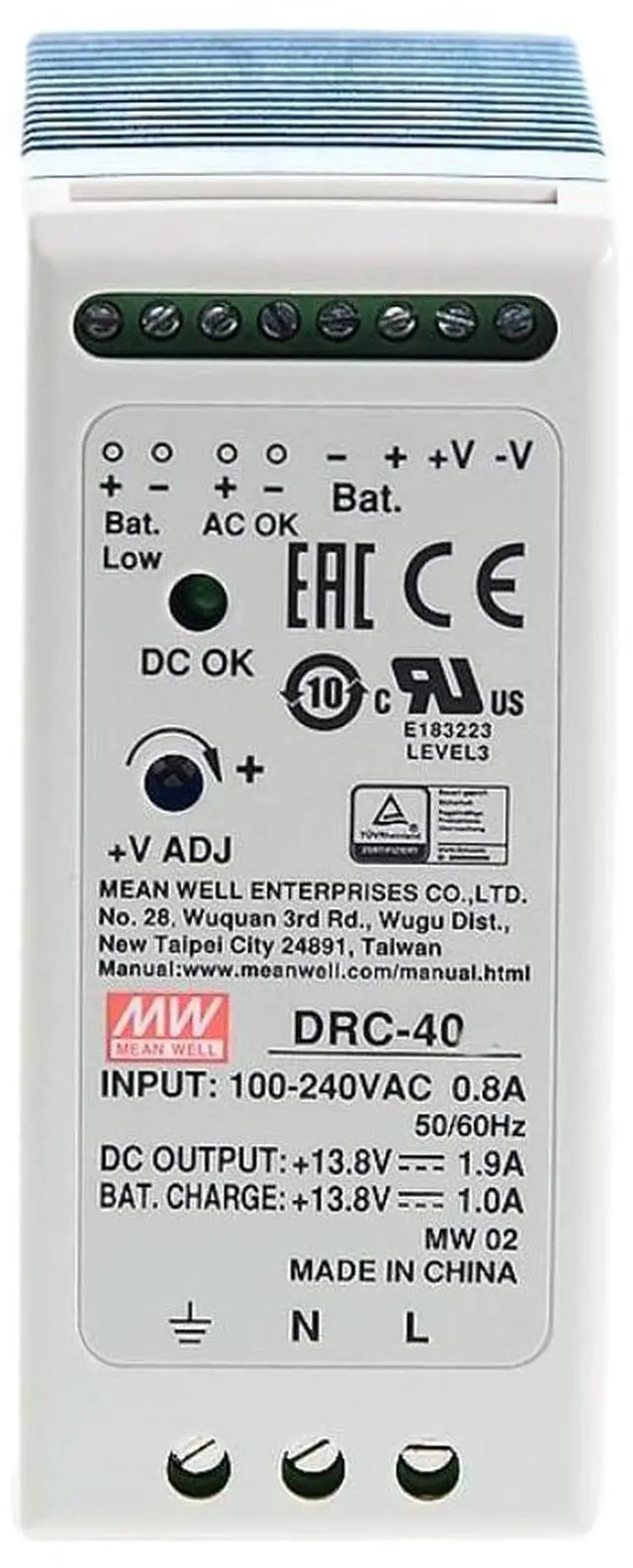 Mean Well DRC 40W 13.8V Switching Power Supply DRC-40A Dual Output AC-DC DIN Rail UPS Power Supply Driver Converter Transformer for Security Systems, Alarm Systems, etc