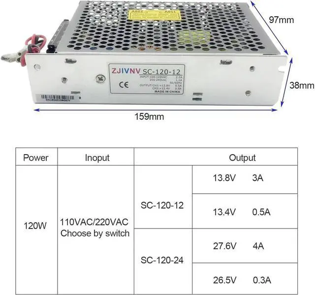 SC-120W-12 120W 12V Universal AC UPS/Charge Function Monitor Switching Power Supply Input 110/220v 13.8v 12v Battery Charger
