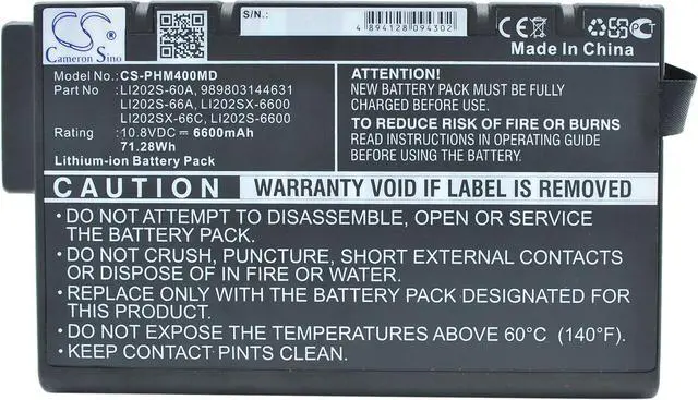 commodity Type: Li-ion, Volts: 10.8V, Capacity: 6600mAh / 71.28Wh.