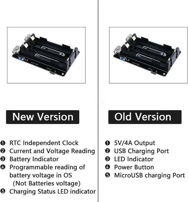 5V UPS with RTC Uninterruptible Power Supply Battery Charger Charging LED Indicator Multiple Protection for Raspberry Pi 4B/3B+/3B