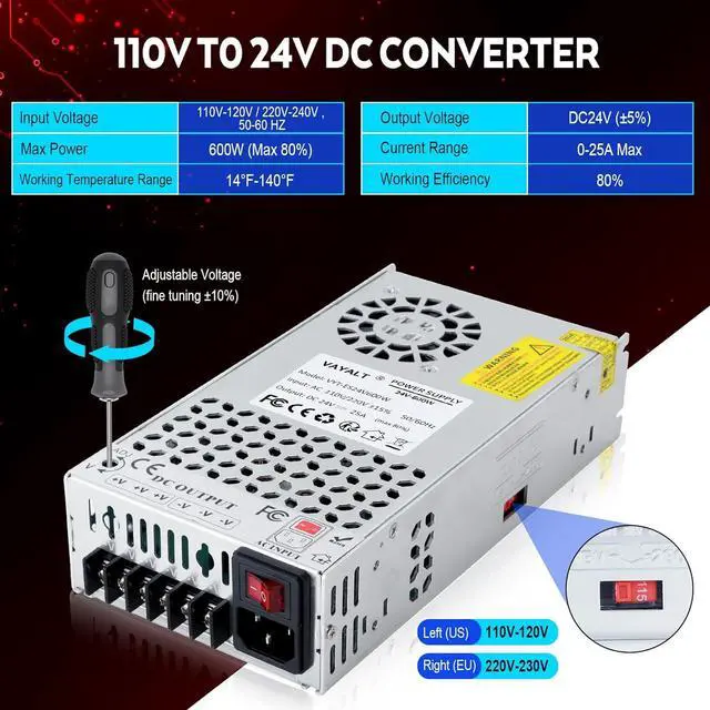- Output Voltage: DC 24V (positive voltage 3, negative voltage 3)