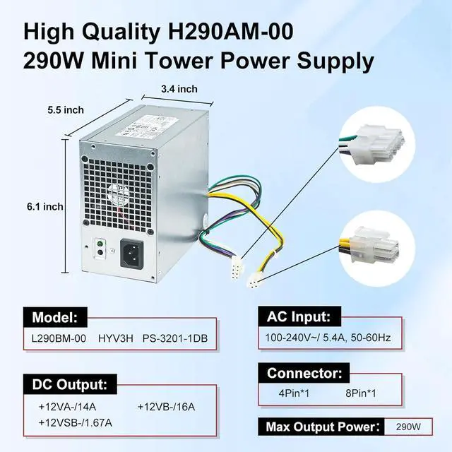 Package Included:1 x Desktop Power Supply Unit (290W)