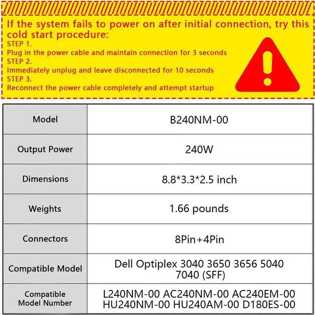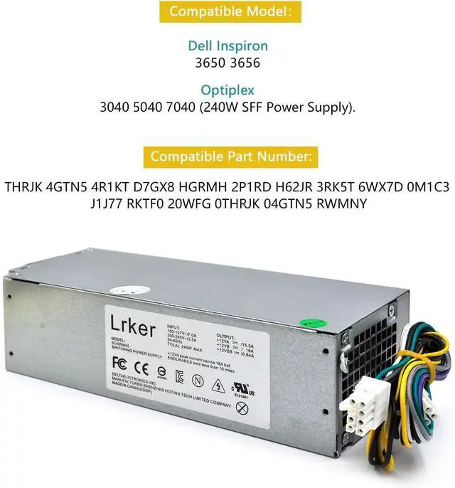This Item240W Power Supply for Dell Inspiron 3046 3650 3656 Optiplex 3040 5040 7040 SFF 04GTN5 4GTN5 H62JR 3RK5T 2P1RD AC240NM-00 B240NM-00 AC240EM-00 HU240NM-00 HU240AM-00 (8Pin+4Pin)RecommendationsS-Union L240AM-00 240W Power Supply Compatible Dell Optiplex 3040 5040 7040 3650 3656 SFF THRJK 4GTN5 D7GX8 HGRMH 2P1RD H62JR 3RK5T B024NM-00 HU240AM-00 AC240EM-00 H240EM-00 D240AS-00 (8Pin+4Pin) 240W Desktop Power Supply Unit PSU Replacement for Dell OptiPlex 390 790 990 3010 7010 9010 (Small Form Factor) SFF Systems H240AS-00 AC240AS-00 L240AS-00 AC240ES-00 H240ES-00 Series ARLBA New Replacement for Dell Optiplex 3040 5040 7040 Inspiron 3650 240W Watt Swithing Power Supply Unit L240NM-00 4GTN5 S-Union 240W Power Supply Unit Replacement for Dell OptiPlex 390 790 960 990 3010 9010 Small Form Factor System SFF H240AS-00 H240AS-01 H240ES-00 D240ES-00 AC240AS-00 AC240ES-00 L240AS-00 PH3C2 POINWER H240AS-01 H240AS-00 L240AS-00 2TXYM 3WN11 240W Optiplex 7010 SFF Power Supply for Dell Optiplex 390 790 960 990 3010 9010 Small Form Factor Systems CCCVC 3RK5T ac240as-00 D240ES-00
