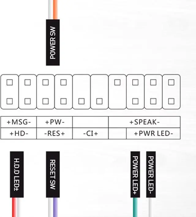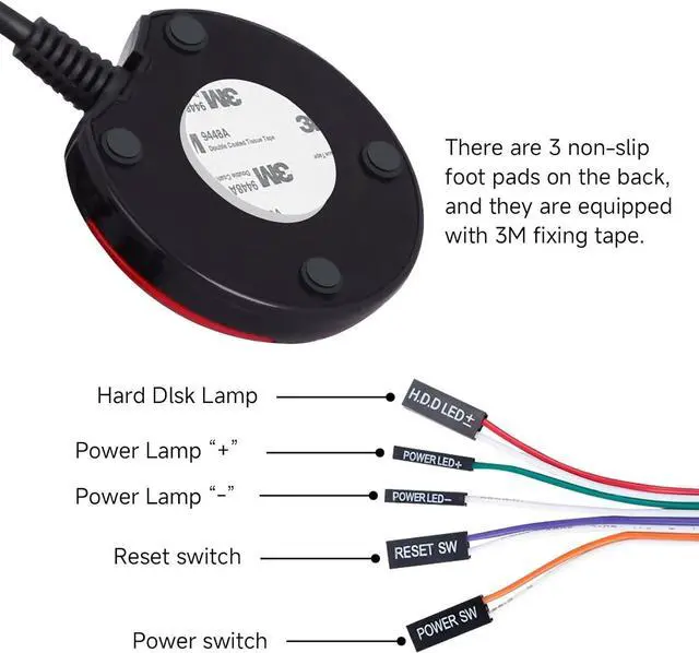 Product Name : Desktop Power Button Switch;Design : H.D.D LED, Power LED+, Power LED-, Reset SW, Switch SW Desktop PC motherboard ATX power reset switch, momentary switch button, fits most desktop computer host cases with front panel button.