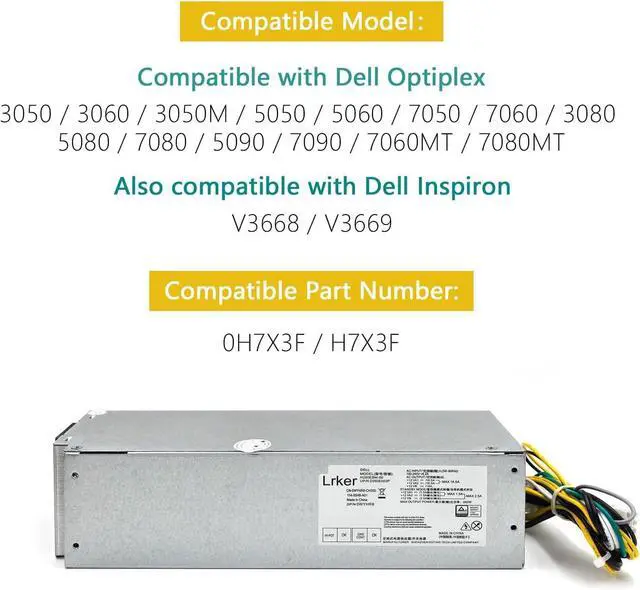This 260W power supply is compatible with Dell Optiplex 3060 3050 3050M 5050 5060 7050 7060 3080 5080 7080 5090 7090 7080MT H7X3F. It delivers stable power output to keep your system running smoothly for all daily computing tasks like web browsing, document editing and more. Rigorously tested for safety and reliability, it protects your PC components from power surges and unstable currents.