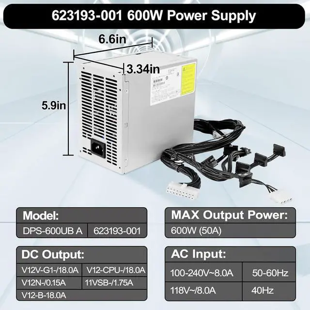DPS-600UB A 600W Power Supply Compatible with HP Z420 Workstation Replaces 632911-001 623193-001 Replacement for HP 600W Power Supply 623193-003 632911-003 18Pin+8Pin+6Pin+6*SATA+IDE Compatible Model No. : DPS-600UB A DPS600UBA Compatible Part No. 623193-001 632911-001 623193-003 632911-003