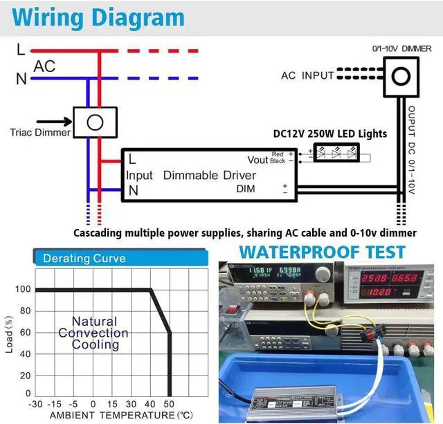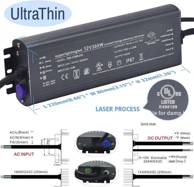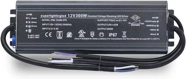 The 0/1-10v and TRIAC 2 in 1 dimmable 300W power transformer provides a safe and effective way for users to tap into and utilize 100-130Volt AC power sources and convert this current to 12 Volts DC, it allows you to control the brightness of 12V LED strip lights, outdoor waterproof led lights, and more from a standard TRIAC and 0-10v wall panel dimmer.