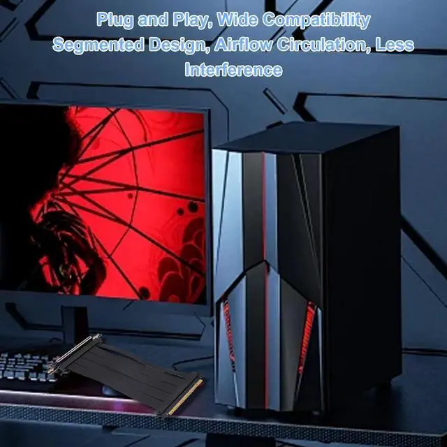 4. Segmented Design: The GPU adapter cable features a segmented design that allows airflow, effectively reducing operating temperature and enhancing overall system performance. The shielded slot facilitates easy installation of vertically mounted GPU, eliminating interference