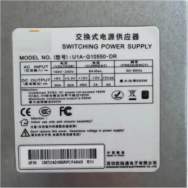 550W Server Power Module, U1A-G10550-DR R2A-GV0550-W