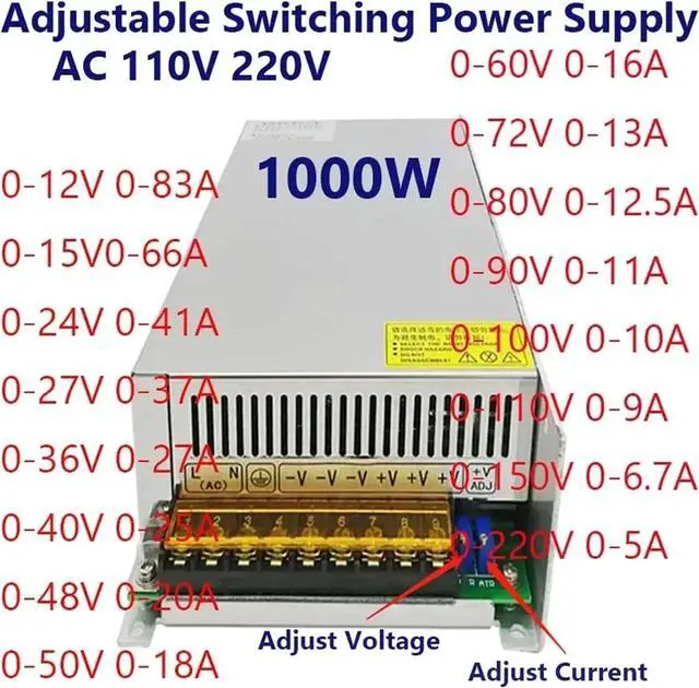 1000W Switching Power Supply AC Adjustable 0- 12V 24V 36V 48V 60V 80V 120V 160V Power Supply 5A 6.5A 20A 40A 70A