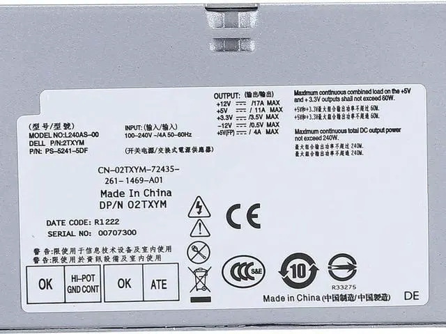 Spec: Item Type: Power Supply Material: Iron shell Application: for OptiPlex 3010,7010,9010SFF/390 790 990 SFF Power: 240W Packing: Kraft paper box