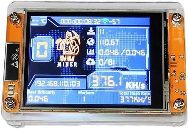 Latest Bitcoin Miner Advanced Performance of 375K/HS Introducing the 2025 Ultimate Bitcoin Miner, an advanced BTC Mining Machine designed for cryptocurrency enthusiasts. With an impressive 375K/HS hash rate, this USB miner vastly outperforms previous models like Nerd Miner V2 and Nerd Miner V3, which only reach 54-76K/HS. Thanks to its superior performance, this Professional Cryptocurrency Miner is ideal for both solo miners and those looking to improve their mining capacity. Ultra Low Power Consumption - Only 1W! Despite its high performance, this Bitcoin Mining Machine is extremely energy efficient, using only 1 watt. This makes it the perfect choice for those who want to maximize their profits by minimizing electricity costs, compared to other less efficient models.