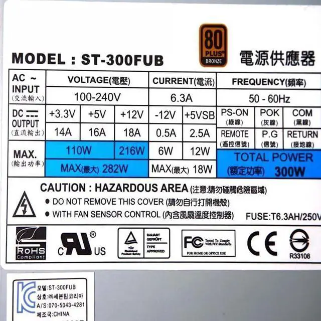 80 PLUS Certification : 80 PLUS BRONZE
