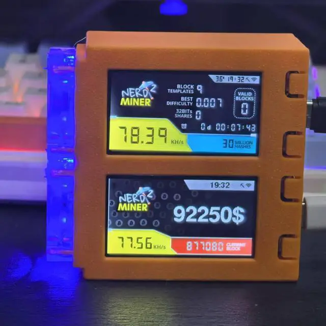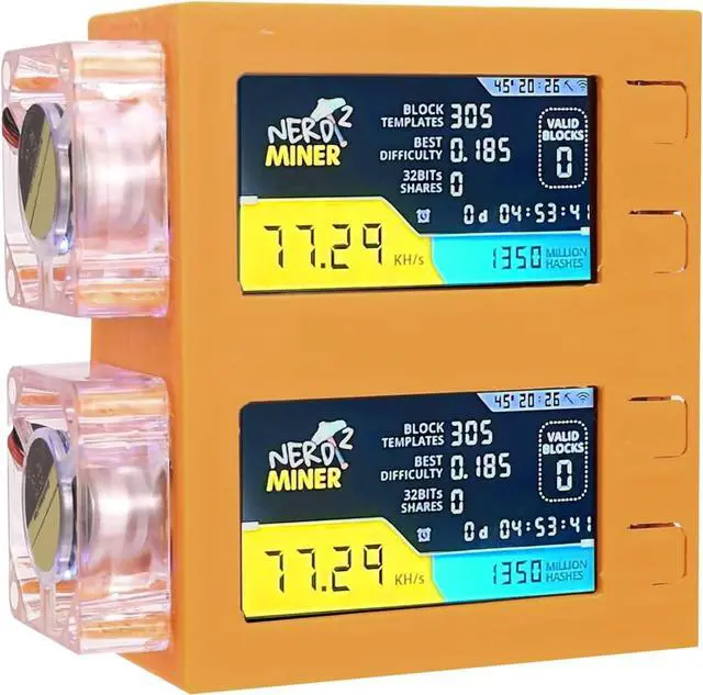 This ItemBitcoins Miner 78KH/s*2 Display S19 Pro 2.4G WiFi Bitcoins Solo Lottery Miner Machine Mini lotto Device Low Power LED Fan(Orange)Recommendations2025 Latest Bitaxe Gamma 601 Bitcoin Miner 1.2TH/S SHA-256 Asic Chip Low Noise Crypto Miner 2.4G WiFi 18W Bitcoins Mining Machine BTC Miner Home Use Bitcoins Miner LV07 Solo Miner 2.4G WiFi SHA-256 1TH/S BM1366, Low Noise Crypto Miner Machine for Home Use,Lottery Mining,Include PSU Nerd Miner V2 Ultra Bitcoin Solo Lottery Miner - BTC - Crypto Nerdminer V2.0 pro Hashrate 78K 1W Firmware 1.6.3 with Orange case Supmine NerdMiner T-Display S3 78KH/S Bitcoin Miner BTC Nerdminer V2 S3 T-Display Bitcoin Solo Mining Machine - 78KH/S HashRate, Crypto Asic Lottery, Latest Firmware, Win 3.125 BTC With Low Power Consumption