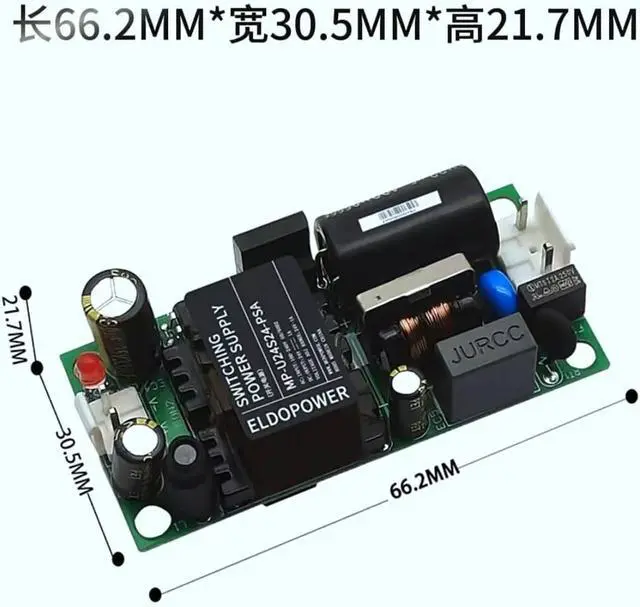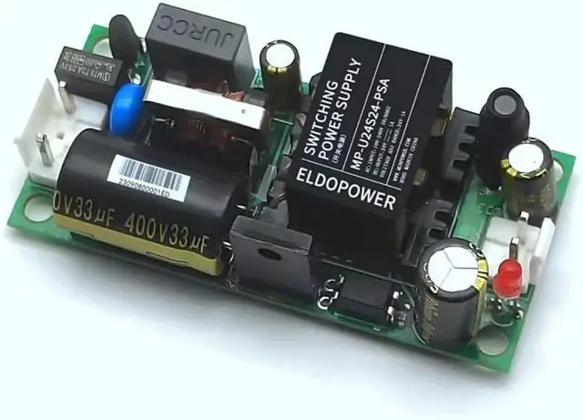 The MP-U24S24-PSA is a high-performance 24W AC-DC power supply module designed to convert an input voltage of 220V AC (or 120V-373V DC) into a stable 24V DC output with a maximum current of 1A. With compact dimensions of 66.2mm x 30.5mm x 21.7mm, this module is perfect for applications with limited space. Its bare board design promotes natural air cooling, ensuring effective thermal management. The module operates within a wide temperature range of -25°C to +60°C and features an isolation voltage rated at 3000VAC for safe use. Reliability is a key feature, supported by a long lifespan and a 3-year warranty. It also includes multiple protection functions to safeguard against input undervoltage, output overvoltage, overcurrent, short circuit, and over-temperature conditions, making it an excellent choice for industrial automation machinery and control systems.