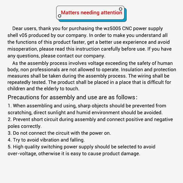 As the assembly process involves human body voltages, layman please do not operate, the assembly process to do insulation and protective measure, repeated testing of the wiring, and should place in children and the elderly difficult to touch.