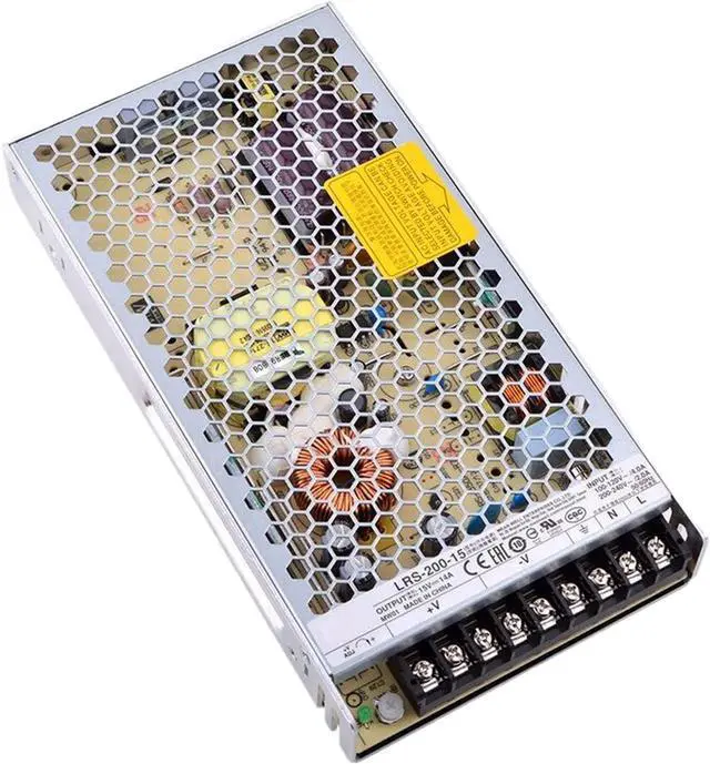 The LRS-200-15 is a 210W single output enclosed power supply that offers exceptional performance and reliability for a wide range of industrial applications. Its 30mm low profile design and 90% high efficiency make it suitable for space-constrained and power-sensitive installations. The robust design with 5G vibration resistance and a wide operating temperature range ensures stable performance even in demanding environments. This power supply features comprehensive protection features including short circuit, overload, overvoltage, and over temperature protection. The LRS-200-15 complies with UL62368-1 international safety regulations, providing a reliable and safe solution for industrial automation machinery, industrial control systems, mechanical and electrical equipment, electronic instruments, devices and appliances, and household appliances.