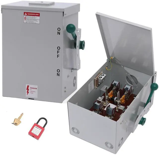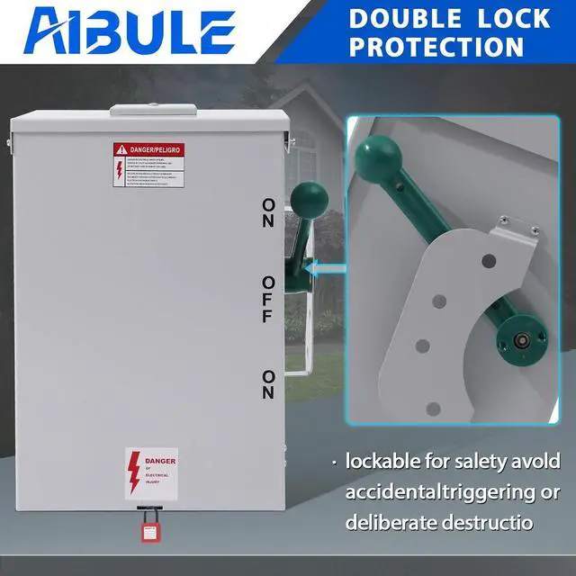 Locked Switch: This Transfer Switch equiped with 2 locking holes, one for Handle, one for box, the switch can be safely secured to the correct position.