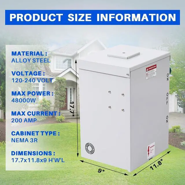 • Safe Switch: This 200A Manual Transfer Switch allow you transfer the power source between utility and Home generator Safely and quickly by equiped with multiple electrical isolation technique.