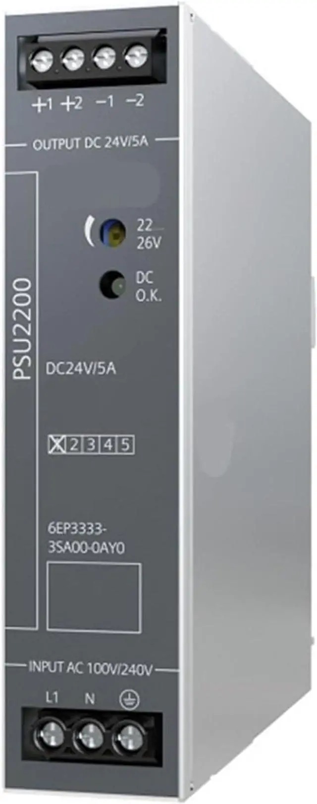 PSU2200/1AC/24VDC/5A Power Supply, Input: AC 90-264V, Output: DC 24V/5A, Low Temperature Cold Start 6EP3333-3SA00-0AY0