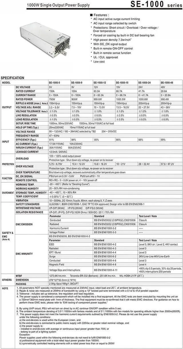 Protections: Short circuit / Overload / Over voltage / Over temperature