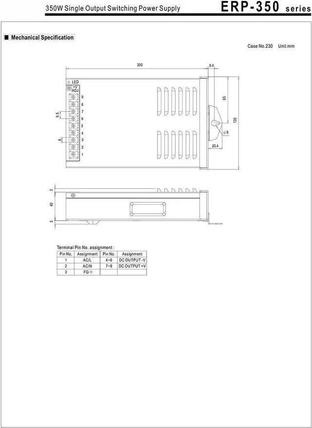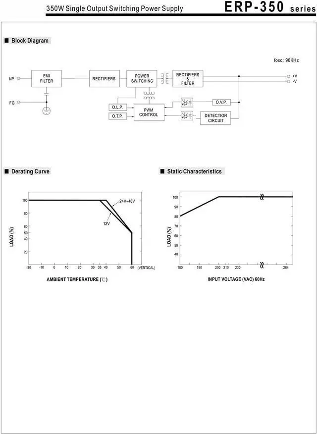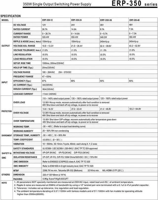 ERP-350 series is a 350W single output enclosed type AC/DC power supply . It adopts an aluminumcase and the interior is semi-potted, protecting the internal electronic components from rain splashand dust. With the complete protection functions, ERP-350 is suitable for the applications such asoutdoor LED channel letters, billboard, commercial display, etc.