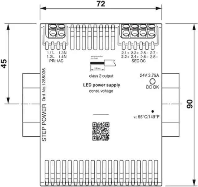 1285036 for Switching Power Supply STEP3-PS/1AC/24DC/3.75/PT/LED Input: 1 Phase, Output: 24 V DC / 3.75 A