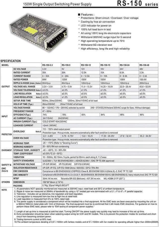 Protections: Short circuit / Overload / Over voltage