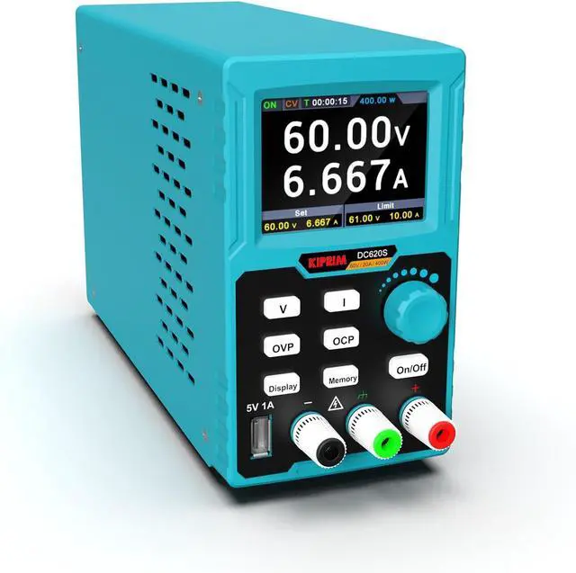 Toggle output ON/OFF to apply settings safely. Adjust voltage/current without live output when disabled.