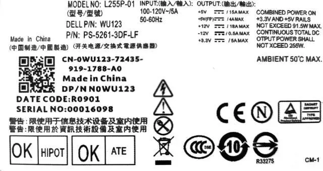 Compatible Model Numbers: F255E-01 D255P-00 H255E-01 L255P-01 AC255AD-00 DPS-255BB A PS-5261-3DF1-LF VP09500052-00 HP-D2553A0