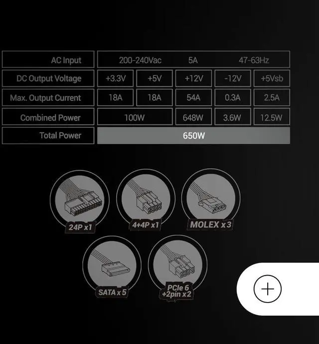 EXTREME SILENCE: The MPB650SI ATX power supply is equipped with an SI fan featuring an advanced copper core and FDB bearings, minimizing friction, extending its lifespan, and ensuring ultra-quiet, stable operation; The fan's advanced frame structure and acceleration channels ensure optimal heat dissipation and continuous airflow