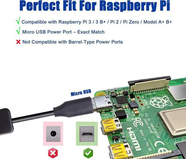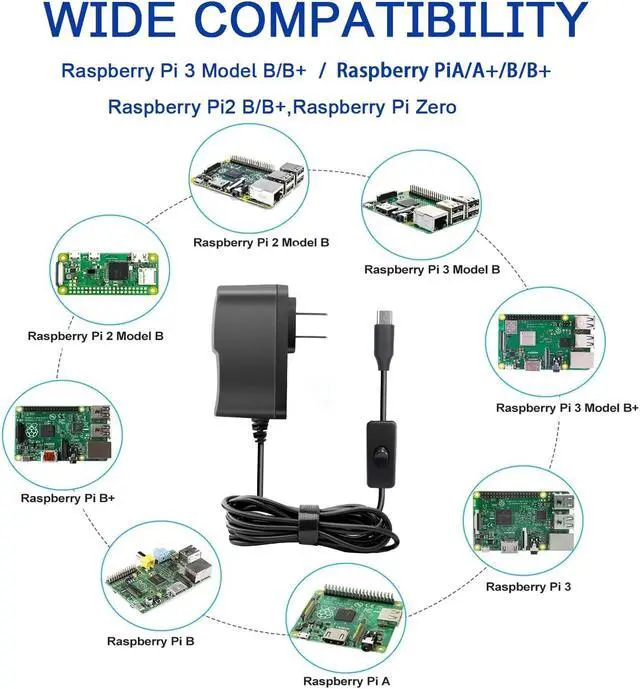 Designed to be fully compatible with Raspberry Pi 3, Pi 3 B+, Pi 2 Model B, Pi Zero,compatible with Raspberry Pi Model A, A+, B, and B+. Also works with other Micro USB-powered SBCs and DIY projects.