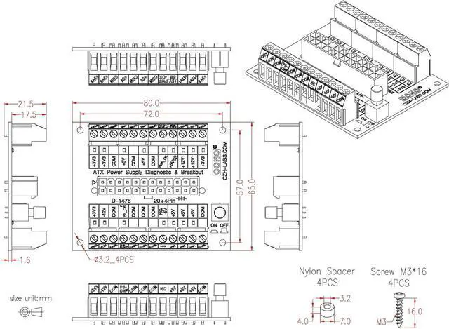 Packing list: 1x Diagnostic breakout board, 4x Screws, 4x Nylon spacers.