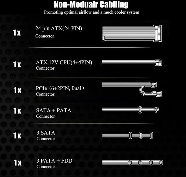 Non-Modular DesignKYLINTEC KY-700W power supply eliminates clutter and ensures neat cable management, promoting optimal airflow and a much cooler system.