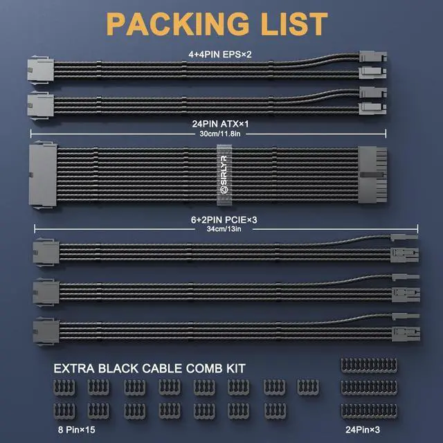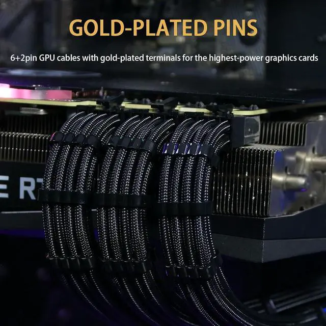 Upgraded 8Pin PCIE with Gold-Plated TerminalsFeatures 8pin GPU extension cables with gold-plated connectors for stable power delivery, compatible with high-performance graphics cards. The extended 34cm/13in length accommodates full-tower or uniquely designed cases.