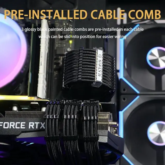 Dual Cable Combs for Neat ManagementEach cable comes with pre-installed smooth, high-precision black combs to maintain shape and ease installation. An additional set of combs is included for advanced cable organization.