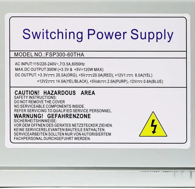 Warranty1* FSP300-60PLN ATX 300W power supply. 1 Year warranty. 100% new part and high quality. All motor fans are TESTED rigorously before shipping. For any reason you're not completely satisfied, you can ask for a replacement or full refund.