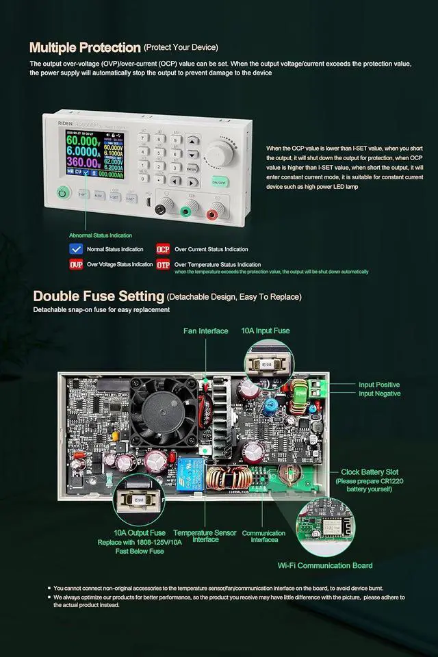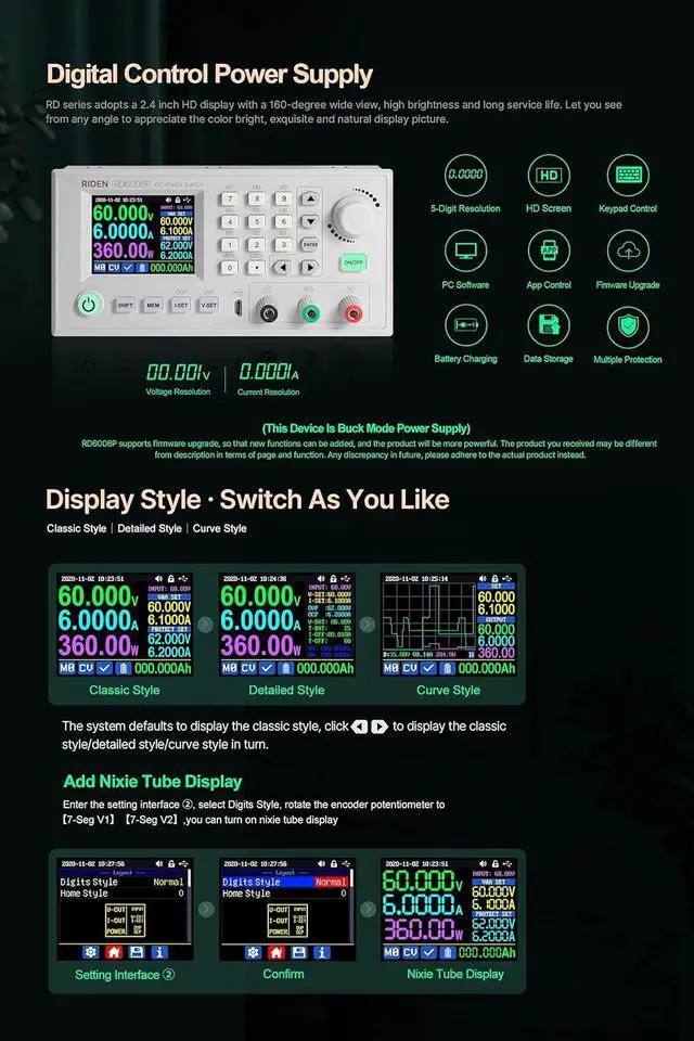 Integrated panel, you only need a shell and a AC-DC power source to form a powerful and adjustable power supply.download the instruction from the card in the RD6006PW box